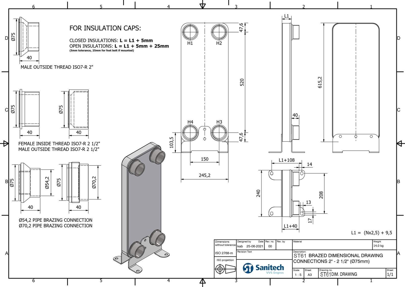 ST61 loddet veksler 2.1/2" tilslutninger Forside » Varme- & Kølecentral » Varme- & Køleveksler » Loddet vekslere Vælg størrelse Vælg variant Information Specifikationer Anmeldelser Hver enkelt detalje er designet med henblik på at sikre optimal ydelse: • Kompakt design • Høj fleksibilitet • Design tryk: op til 40 bar • Driftstemperatur: op til 185° C Varenummer: 061016